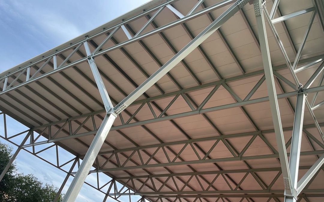 Uno de los aspectos más relevantes de este proyecto ha sido el diseño y cálculo preciso de los nudos estructurales. Nos hemos asegurado de que cada conexión entre los elementos de la estructura fuese atornillada, lo que ha permitido optimizar la seguridad y la durabilidad de la instalación. Este tipo de uniones mecánicas garantizan una distribución eficiente de las cargas y minimizan el mantenimiento a largo plazo.